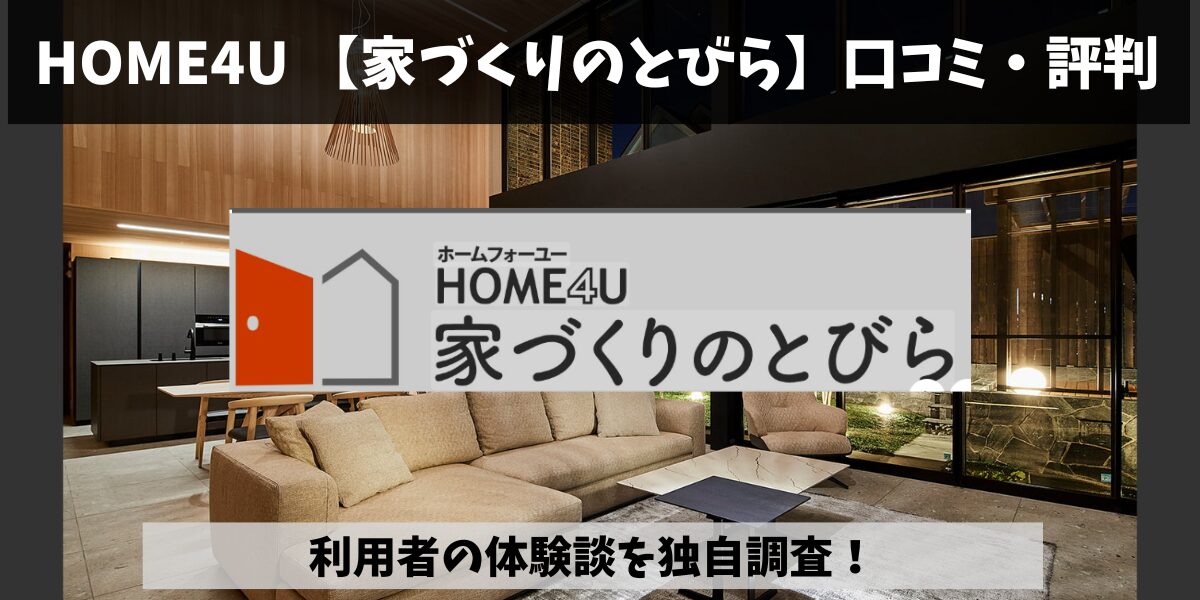 「Bino 日興ホーム ひどい、やばい、評判悪い」と検索して不安を感じていませんか? 実際に検討する立場になると、後悔や失敗の口コミが気になって当然です。 結論から言えば、Bino 日興ホームは創業100年以上の信頼を持つ老舗企業ですが、注意点を理解し... 企業HOME4U 家づくりのとびらの口コミ・評判|利用者の体験談を独自調査!