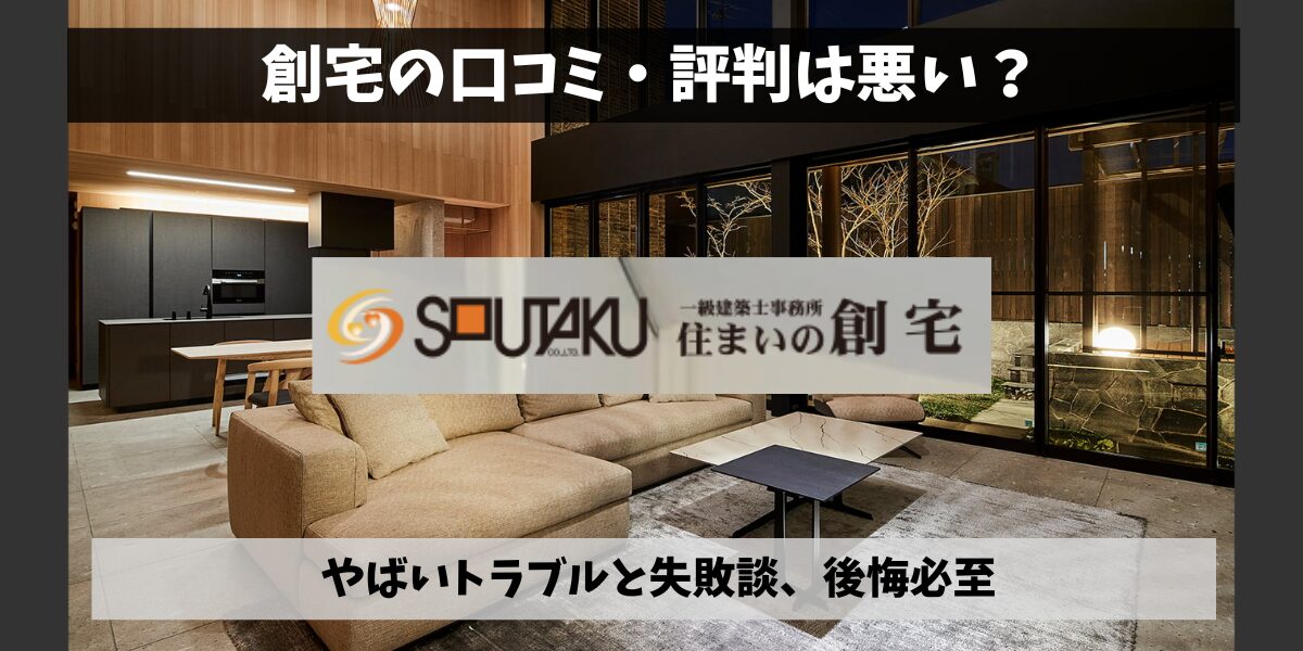 <創宅> ひどい、やばい、評判悪い――このワードで検索する方は「家づくりで絶対に失敗したくない」「リアルな声や後悔談も知ってから判断したい」と思っているはずです。 ネット上には創宅の悪い口コミやネガティブな評判も見られますが、実際の体験者の... -