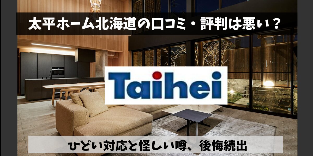 「太平ホーム北海道 ひどい やばい 評判悪い」と検索すると、施工ミスやアフターが遅いという声が見つかりますが、一方で“断熱性が高くコスパが良い”と評価する声も多く、実際はメリット・デメリットがはっきり分かれるハウスメーカーです。 結論から言え...