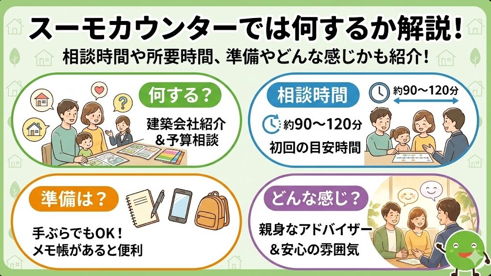 スーモカウンターでは何するか解説!相談時間や所要時間、準備やどんな感じかも紹介!