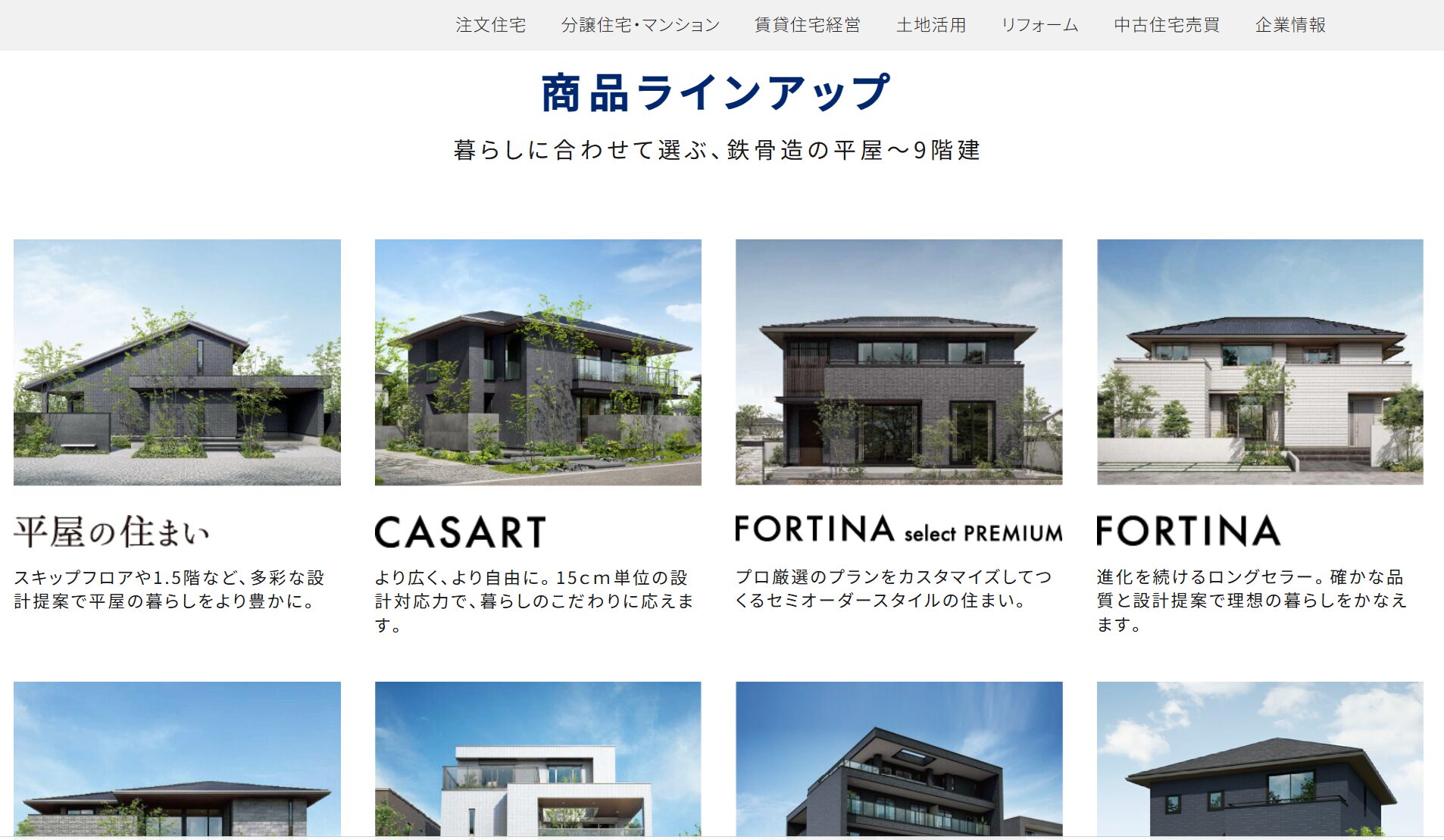 鉄骨構造を軸に、自由設計・高耐震・長期保証を備えた商品がそろい、同じ坪単価帯でも「設計自由度」「性能」「質感」に違いが出ます。