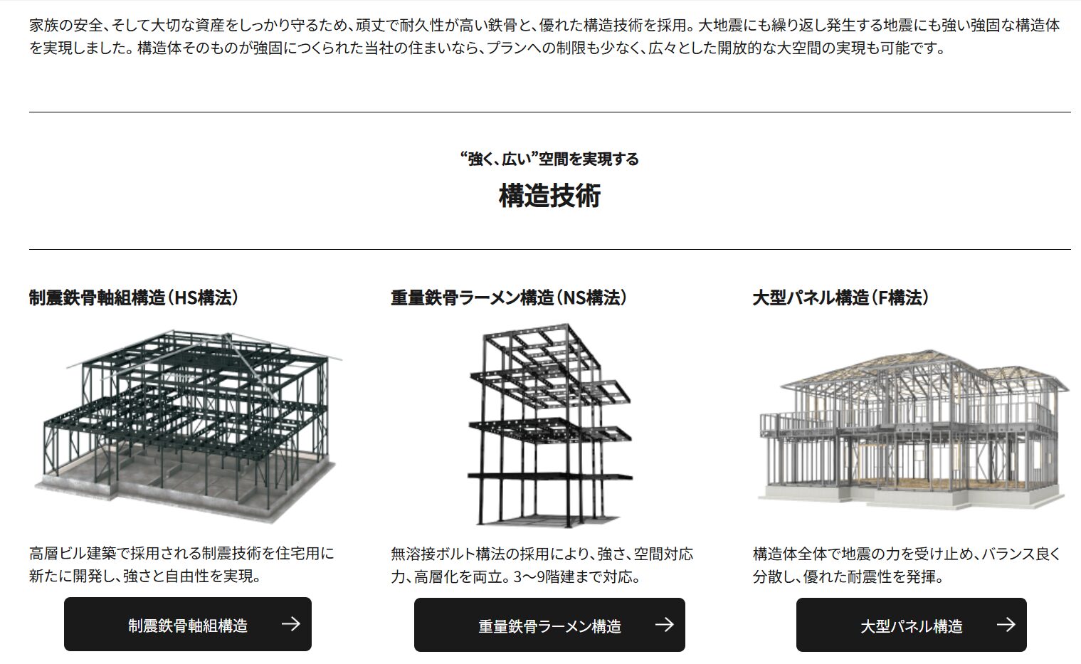 軽量鉄骨構造と耐震等級3相当の設計思想を採用し、全国対応の体制を持つメーカーです。