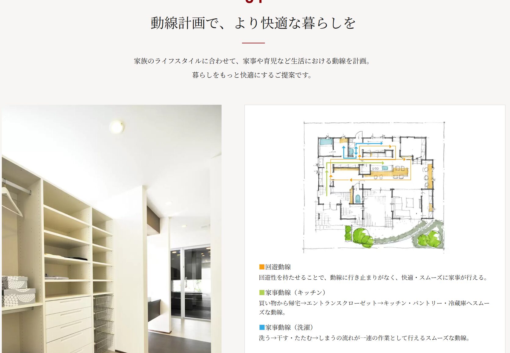 また、洗濯物が乾きにくい地域柄、サンルームを軸にした動線計画はどのプランでも高い満足度を得ています。