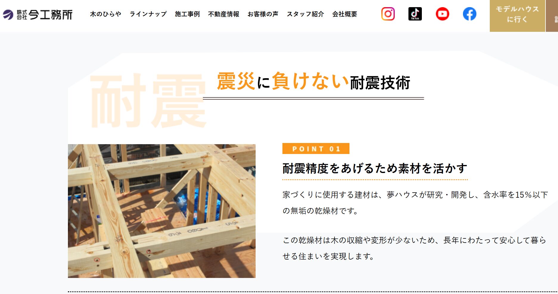 今工務所は耐震等級3相当・断熱等級6相当の住宅性能を備えています。