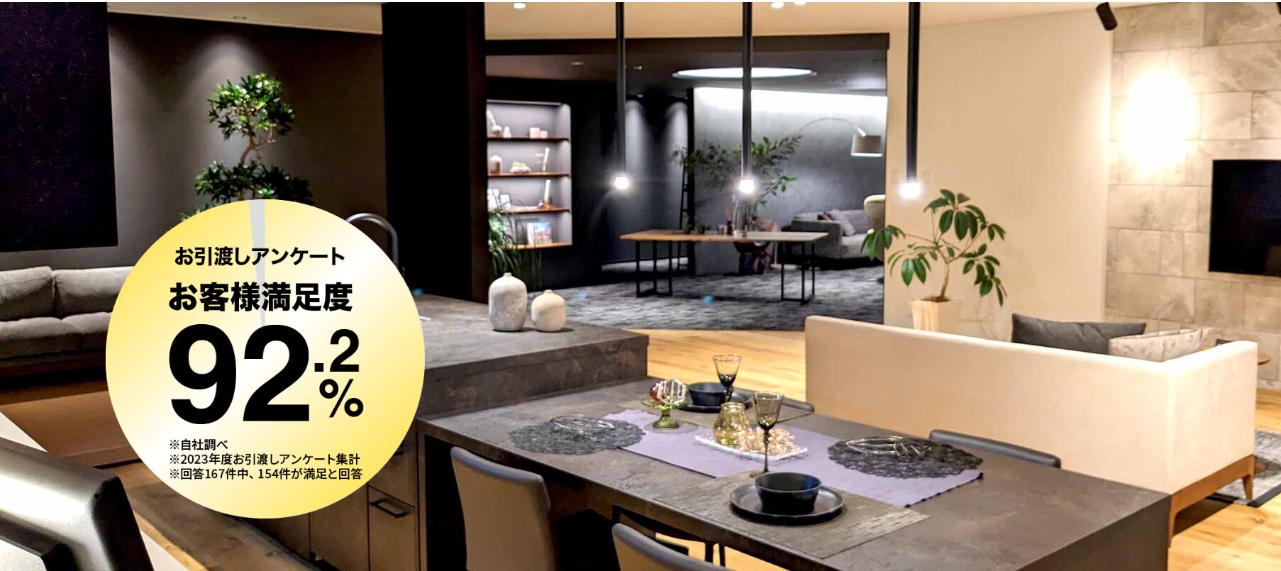 自由設計を基本としながら、高断熱・耐震等級3相当の性能を確保し、コストと品質のバランスに優れた住宅を提供しています。