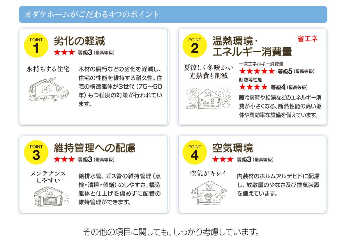 オダケホームの商品は、坪単価を抑えたSTANDARDから、省エネ性能を重視したZEH STYLEまで幅広く展開されています。