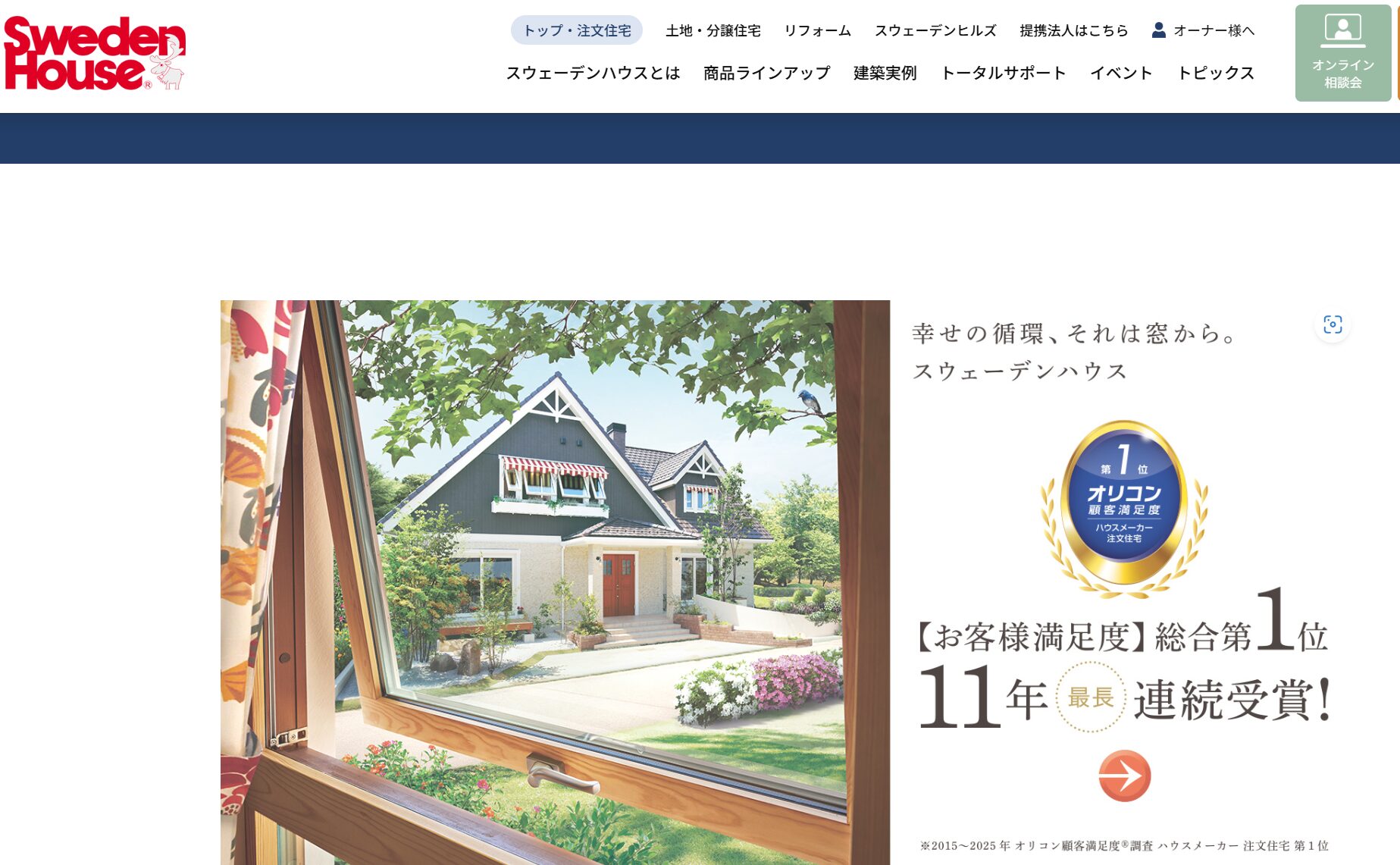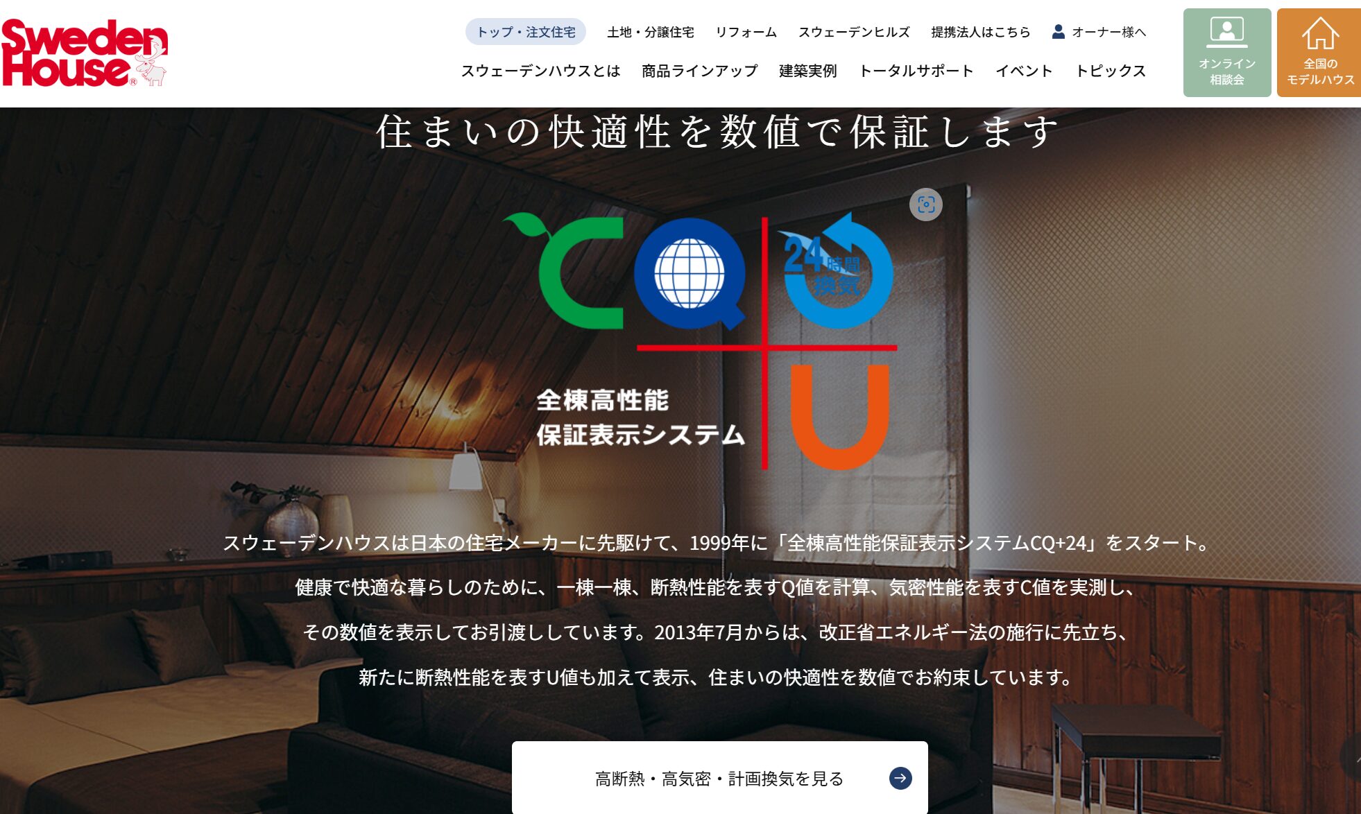 スウェーデンハウスは高断熱・高耐久を強みとする老舗メーカーです。