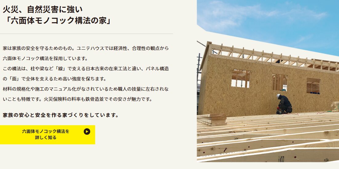 ユニテハウスは、設計と施工を合理化することで価格を抑えつつ、耐震性や断熱性といった基本性能を確保している住宅です。