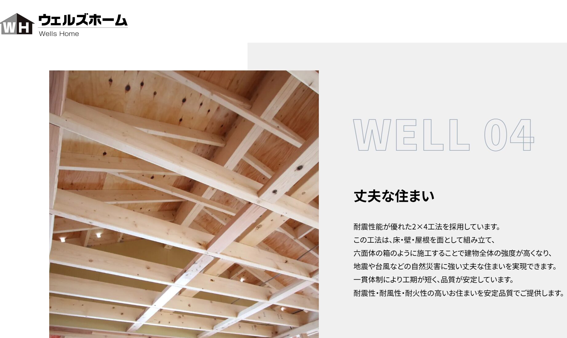 ウェルズホームは耐震等級3対応や断熱等級6相当の仕様を備え、坪単価45万円台から建築可能な地域密着型ビルダーです。
