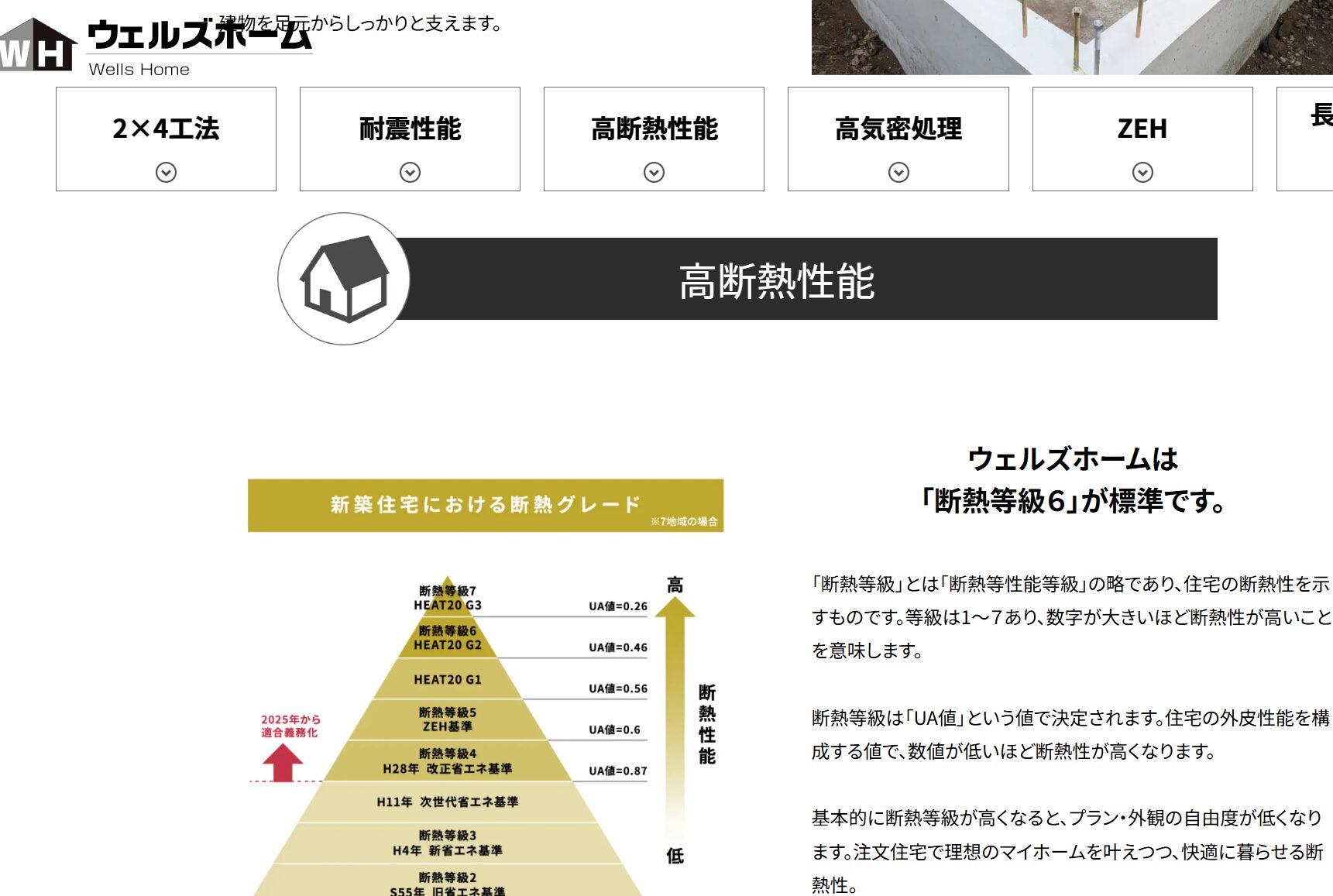 ウェルズホームは耐震等級3対応・断熱等級6相当の住宅を提供しています。