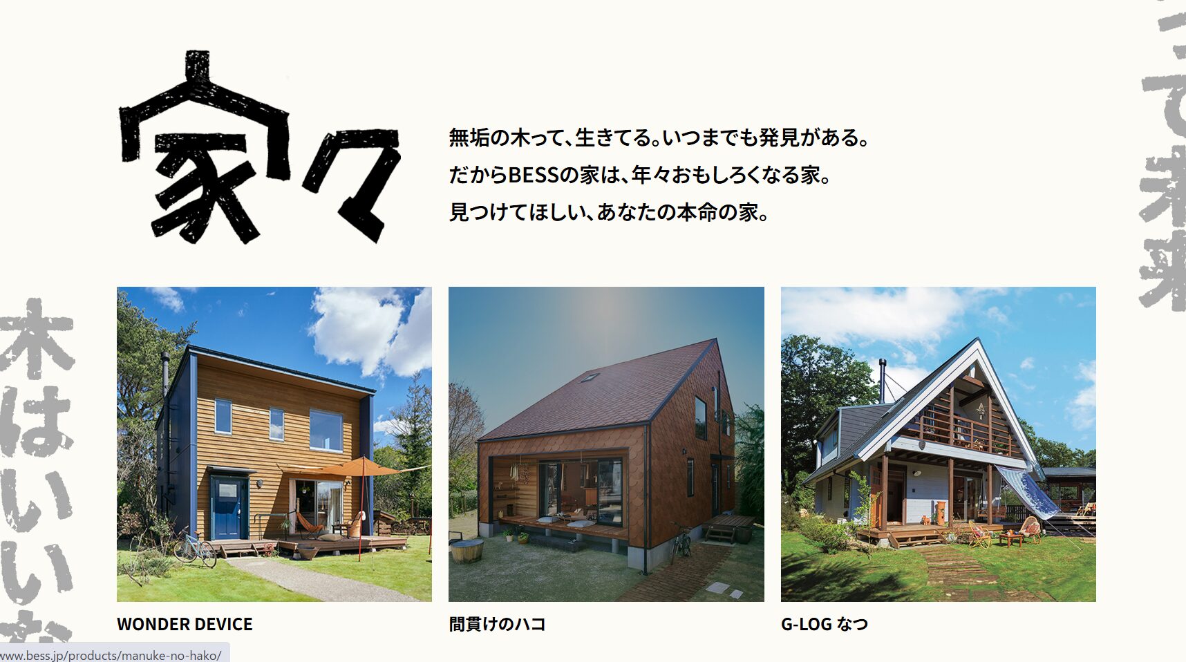 昨日BESSの家を見てきました、とても、木のぬくもりが感じられ、よかったです。未だに木の臭いを感じる時もあり、非常に満足しています。