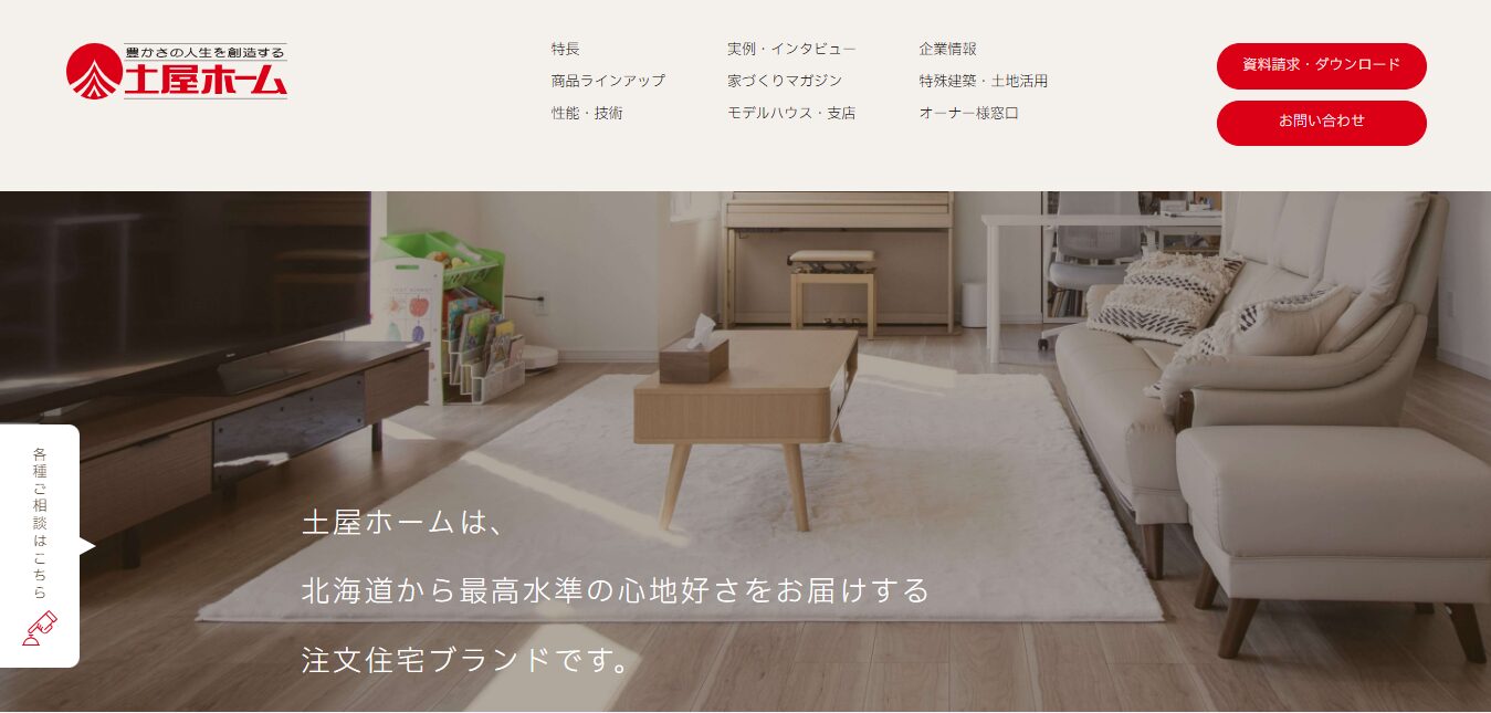| 土屋ホーム | 北海道発・寒冷地断熱の先駆者 | 60〜100万円/坪 | ◎(完全自由設計) | 初期10年+延長30年可 | 木造軸組工法 | 秋田県内4か所以上 |