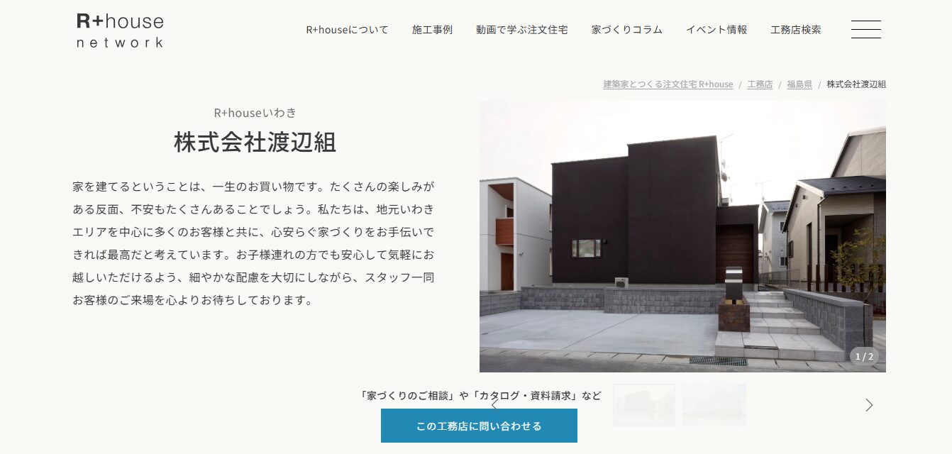 R+houseいわき(渡辺組) | 建築家住宅を手軽に実現 | 約65〜85万円 | ◎(建築家提案) | 初期20年+延長可 | 木造軸組 | 1か所 |
