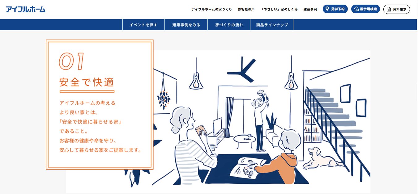 アイフルホーム(株式会社ビュー) | 子育て性能に定評あり | 約50〜75万円 | ◯(自由設計) | 初期20年+延長可 | 木造(在来工法) | 3か所以上 |