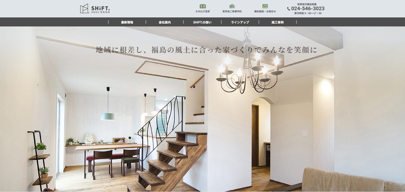 SHiFT.(福島総建) | 地元密着の高性能住宅 | 約55〜70万円 | ◎(自由設計) | 初期20年+延長可 | 木造軸組 | 1か所 |