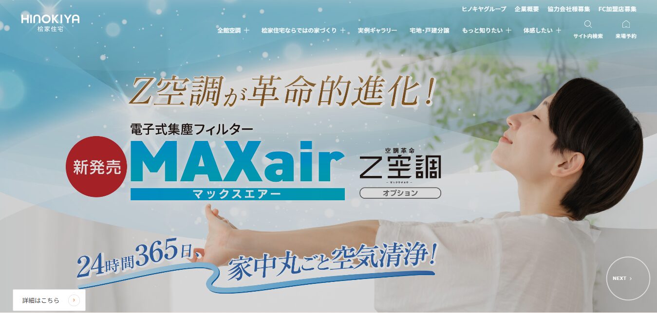 | 桧家住宅 | Z空調で快適な温度管理 | 約60〜70万円 | ◯(自由設計可) | 初期10年+延長可 | 木造軸組工法 | 2か所 |