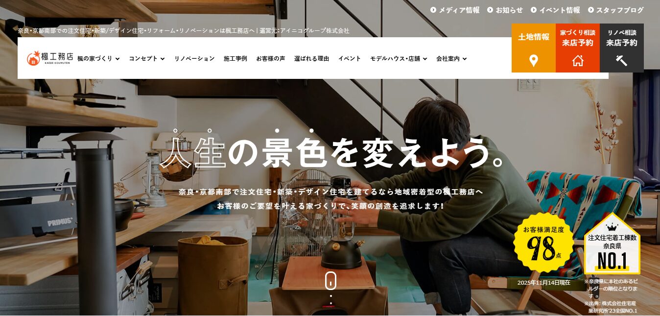 口コミ評価も高く、奈良県内で家づくりを検討する方にとって最初に候補に挙げるべきメーカーといえます。