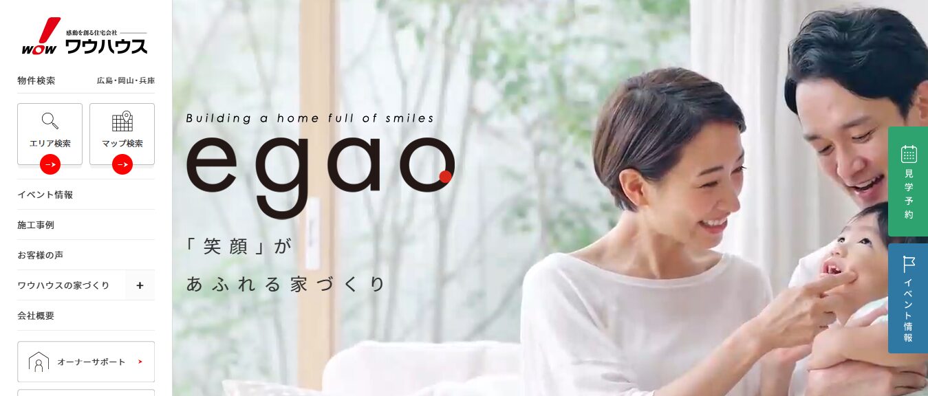 アンドディハウス(ワウハウス岡山) | 若年層に人気のローコスト住宅 | 45〜55万円 | ◯(自由度標準) | 要確認 | 木造軸組工法 | 2か所以上 |