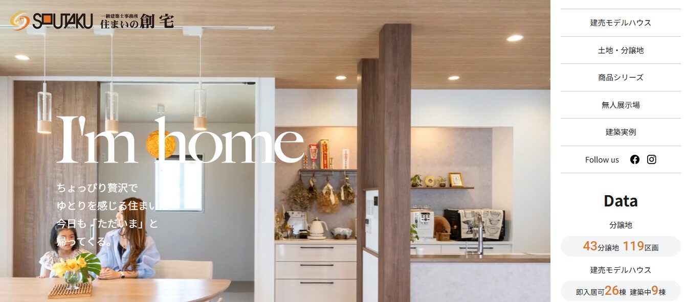 創宅 | 倉敷密着で誠実対応 | 50〜65万円 | ◯(自由設計対応) | 要確認 | 木造軸組工法 | 2か所以上 |