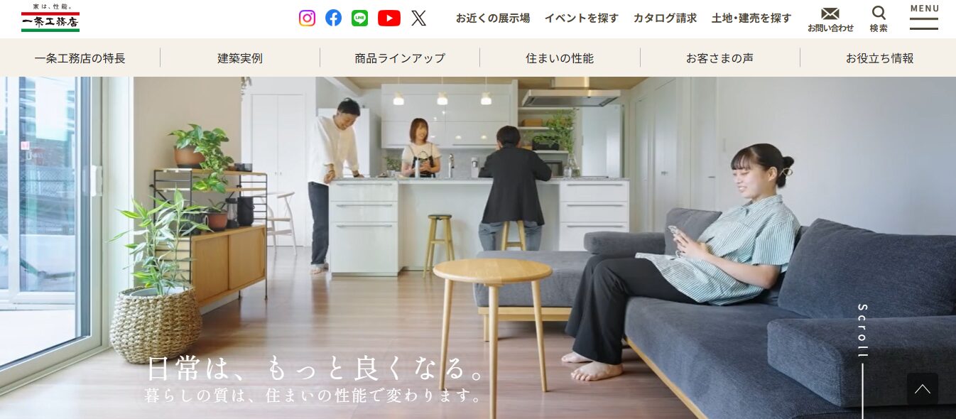 一条工務店は省エネ性能に優れ、特に冬の暖かさに定評があります。