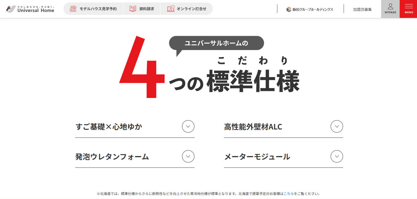 | 特徴・強み | 断熱・気密性能トップクラス。全館床暖房・太陽光搭載率も高く、省エネ住宅の代表格 |