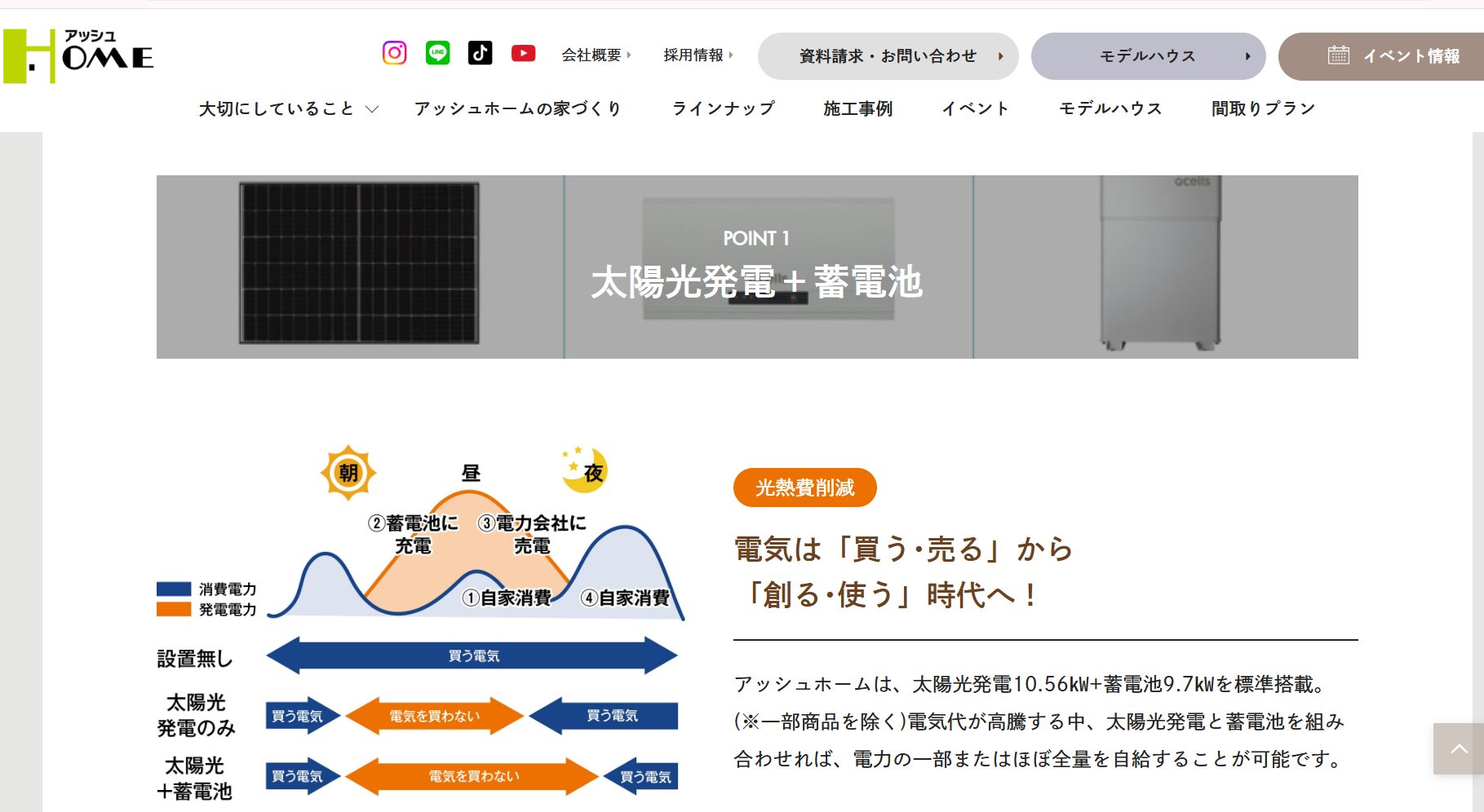 A:アッシュホームでは太陽光発電は「標準搭載」ではありませんが、ZEH仕様やエコプランを選ぶことで搭載可能です。