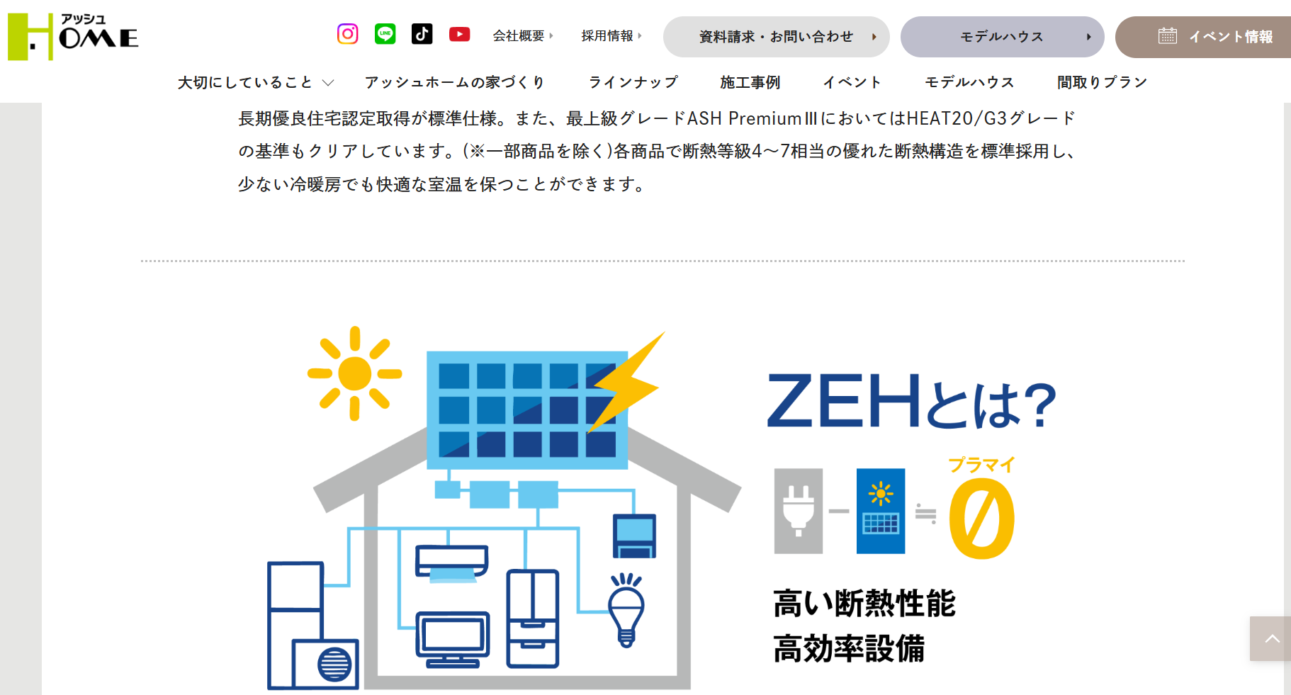 アッシュホームでは、標準仕様で一定水準以上の断熱・耐震性能を確保。