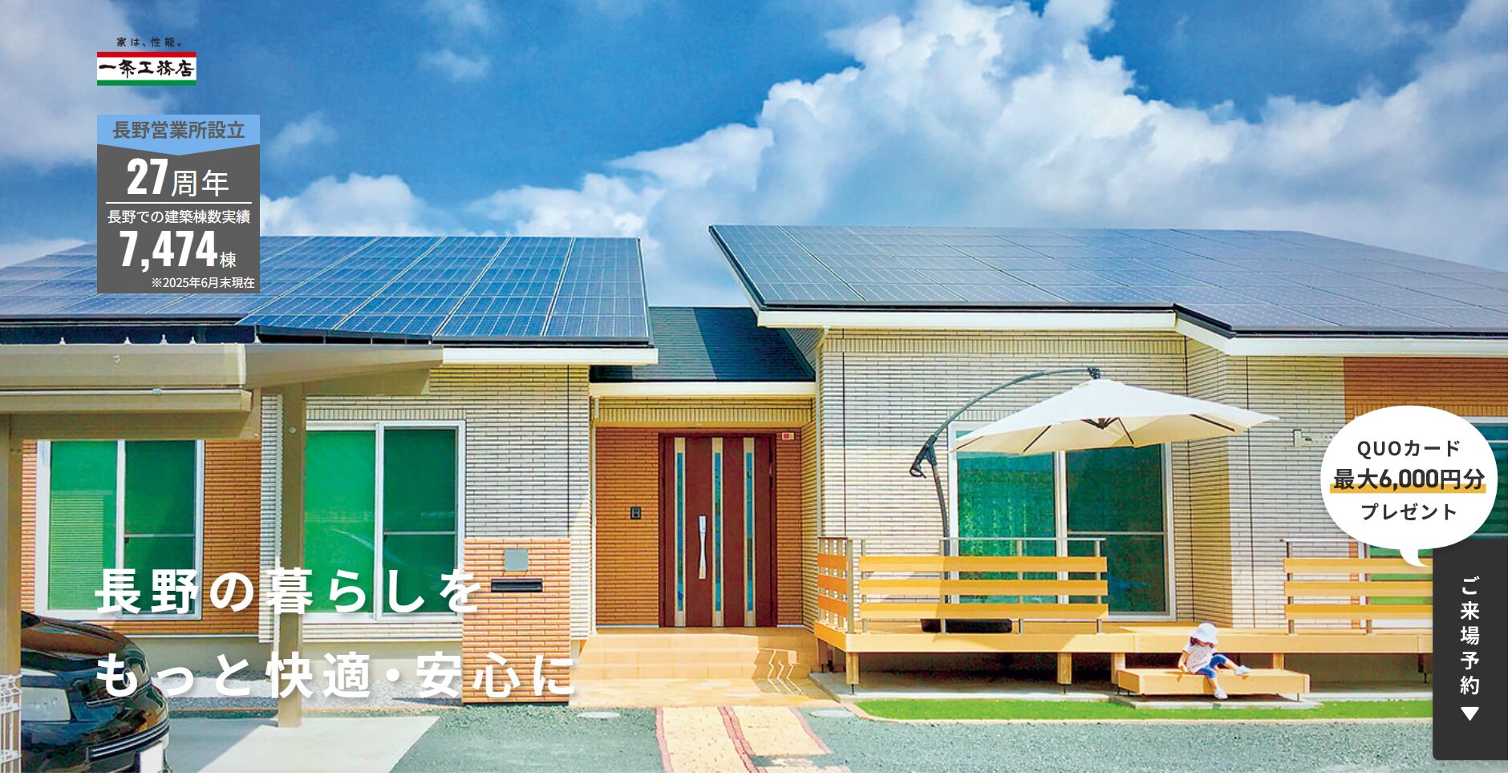 一条工務店は「家は性能」を掲げ、全棟で耐震等級3・断熱等級7を標準仕様とする性能特化型メーカーです。