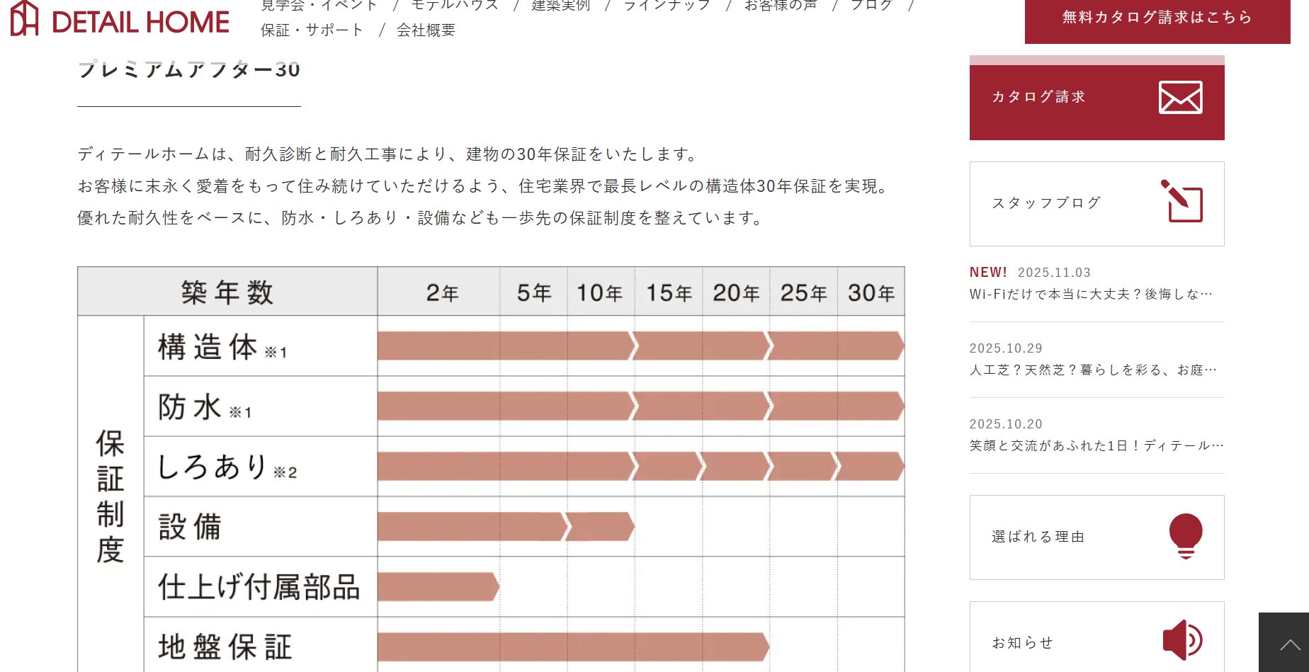 - 保証は10年を中心に構造・地盤・シロアリなどを対象とする
