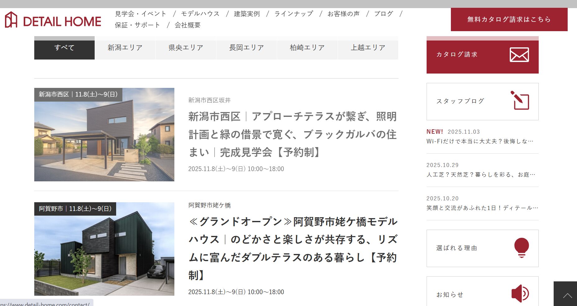 A:ディテールホームは新潟県を中心に展開しており、長岡・新潟市周辺で多くの施工実績があります。