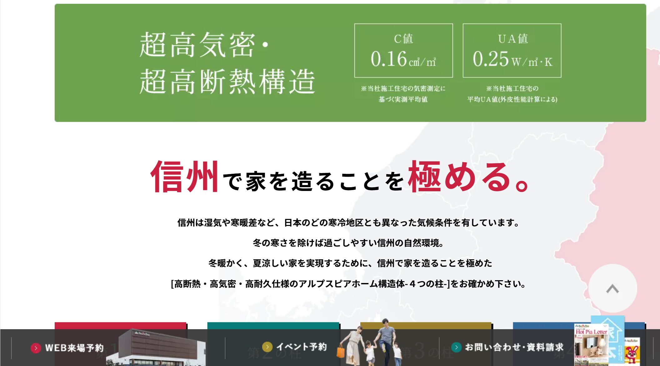 アルプスピアホームは信州エリアに特化した気候対応住宅を強みとしています。