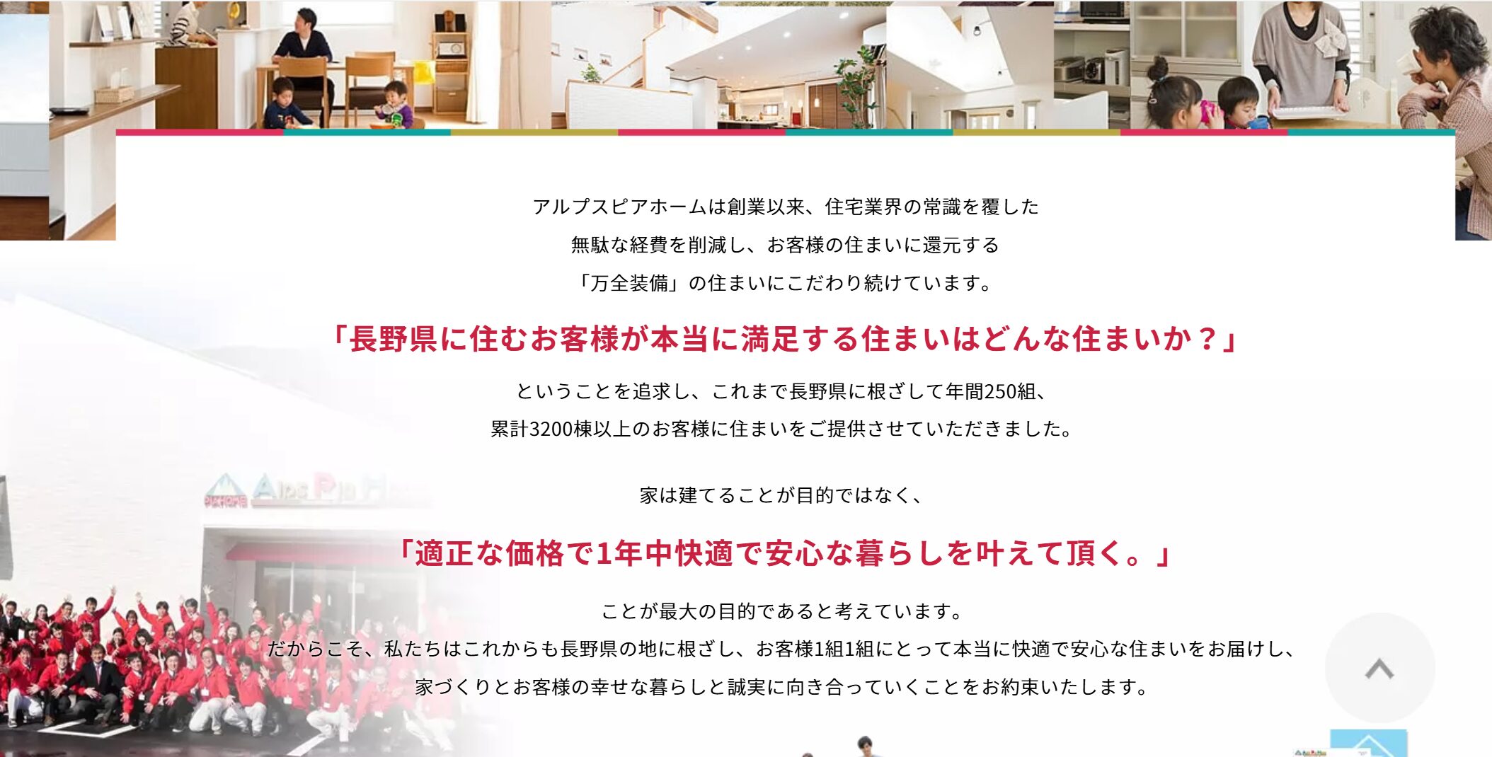 アルプスピアホームは、地域特化ならではの高性能な住宅と手厚いサポートが特徴です。