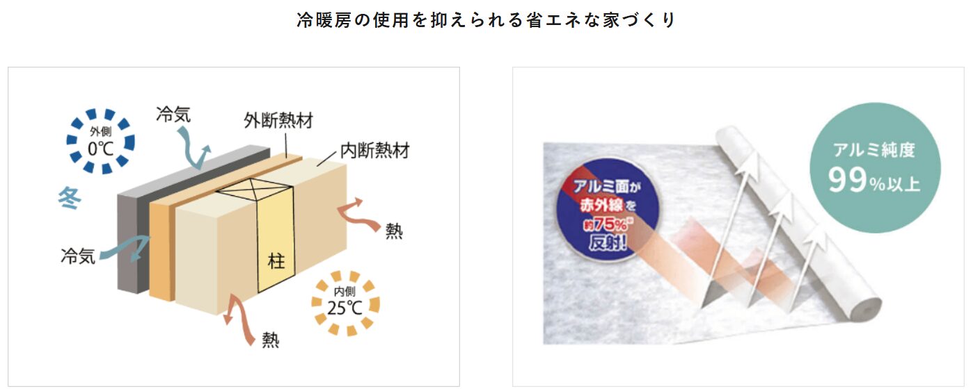高断熱・高気密の性能が標準仕様で、冷暖房コストを抑えたい人に向いています。