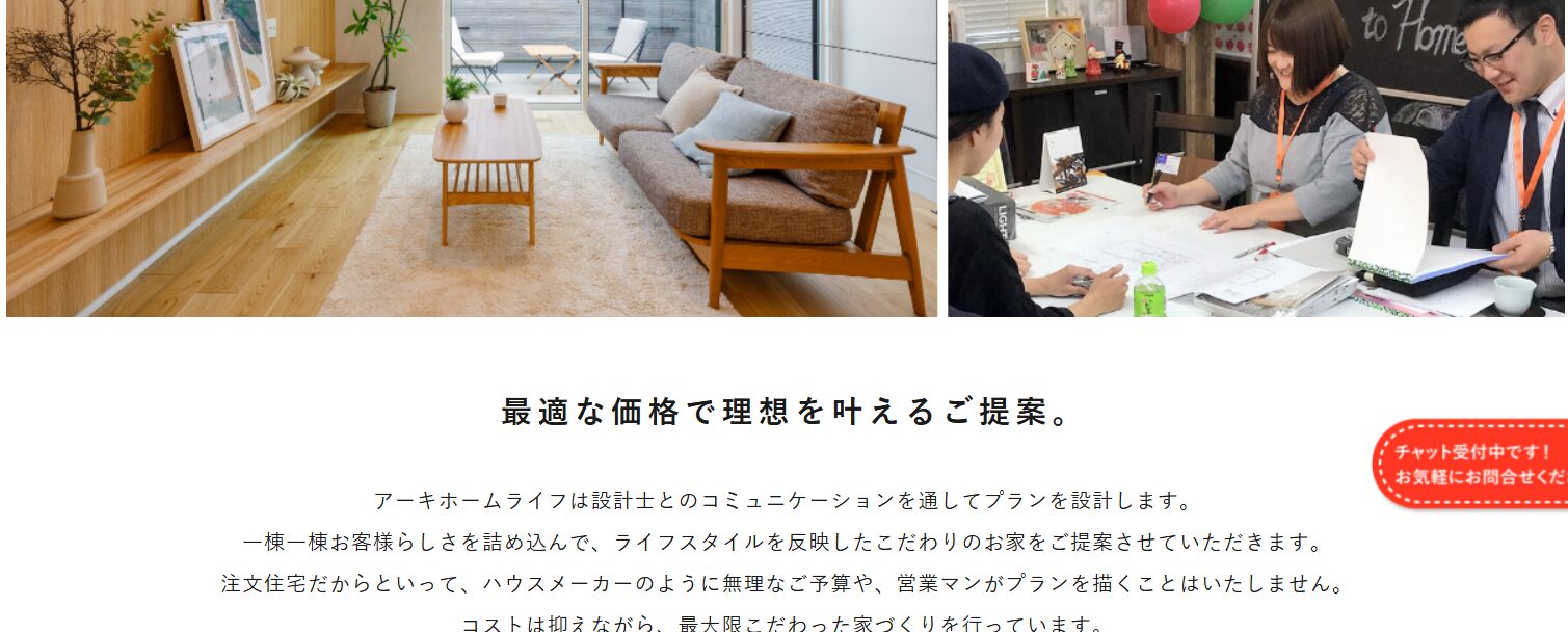 アーキホームライフは「ローコストながら性能・デザイン・対応力に優れた住宅会社」として、多くの施主に選ばれています。