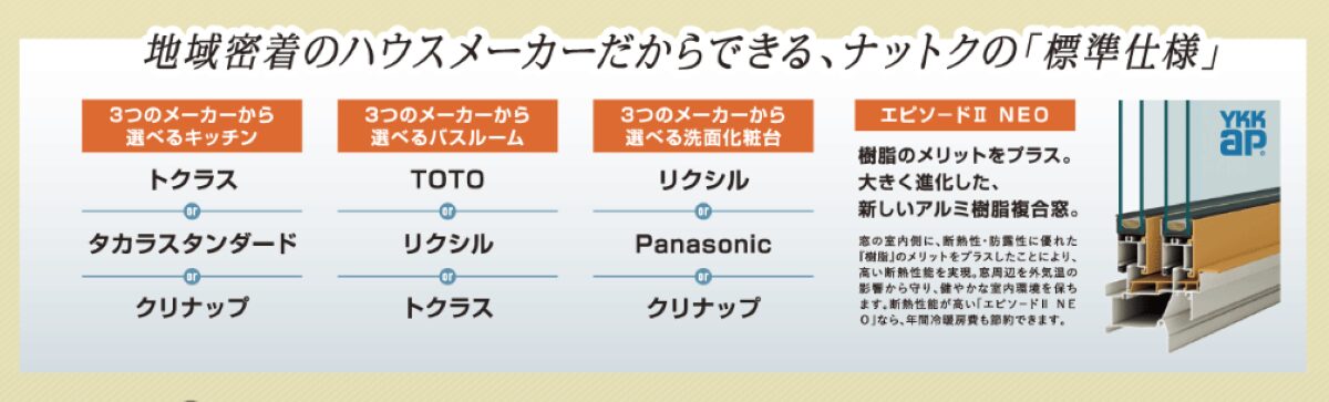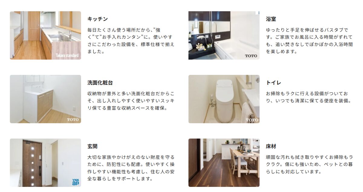 全国展開しているため、店舗数や相談しやすさが魅力です。標準仕様が比較的整っており、コストバランスの良さは大きな強み。