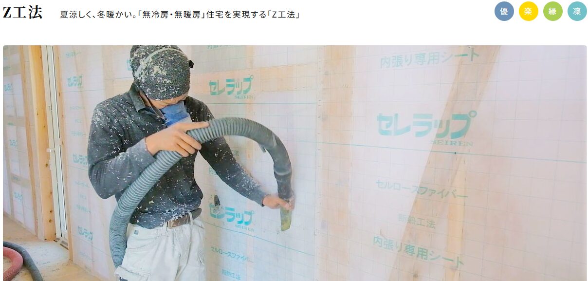 コスモホームは「Z工法」と称する高断熱・高気密仕様を案内しており、無垢材・自然素材を活かした住宅を提案しています。