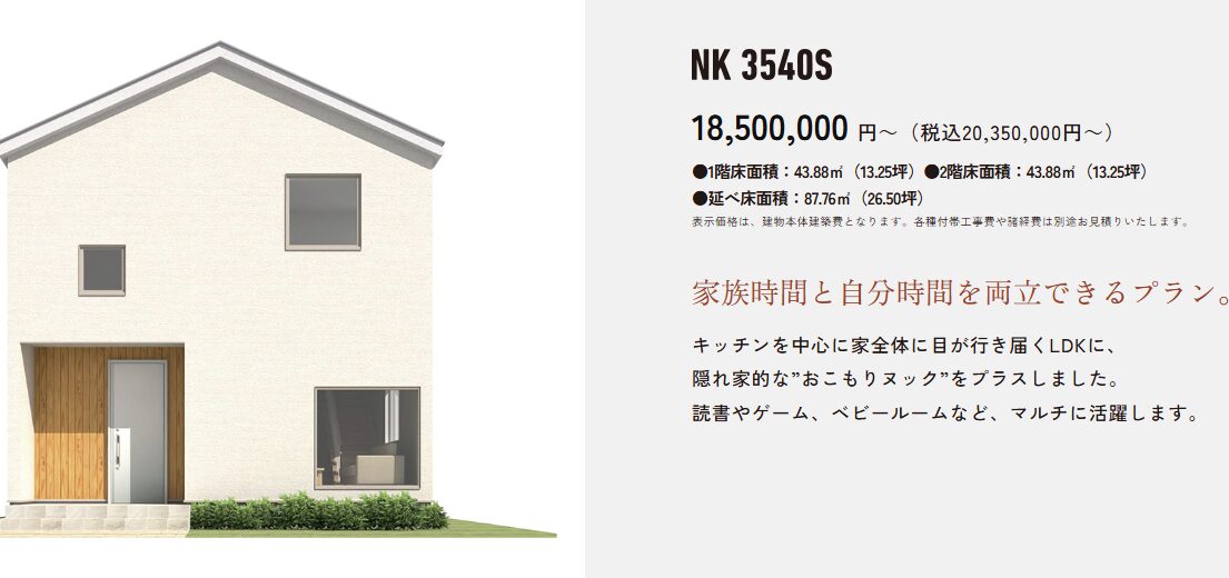 育て世帯向けの動線や収納提案に強く、標準仕様でも使い勝手の良いプランが取りやすい点が特徴になります。
