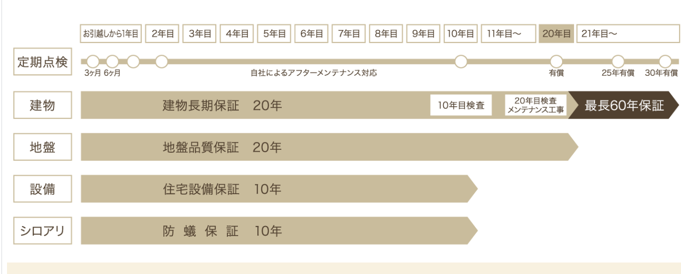 | クレバリーホーム | 木造在来 | 約40~50万円 | 外壁タイルで上質感 | 等級3相当に対応可 | ZEH水準対応可 | 初期10年+タイル長期保証 | FC網での点検体制 | 全国(FC展開) |