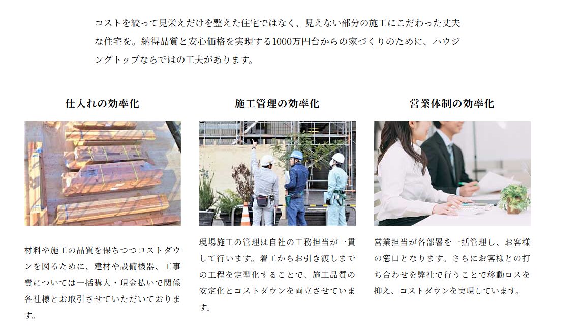 ハウジングトップは、同価格帯の中でも初期コストの抑制に強みがあります。