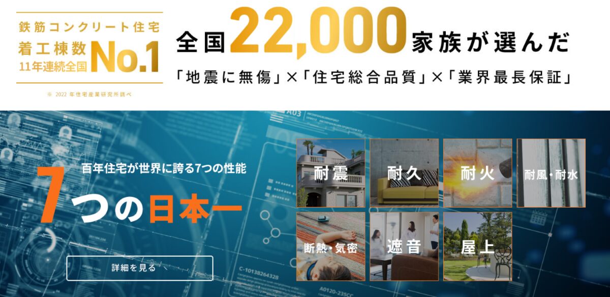 鉄筋コンクリート住宅着工数No.1という実績は信頼の裏付けであり、ブランド力は検討段階での安心感につながります。