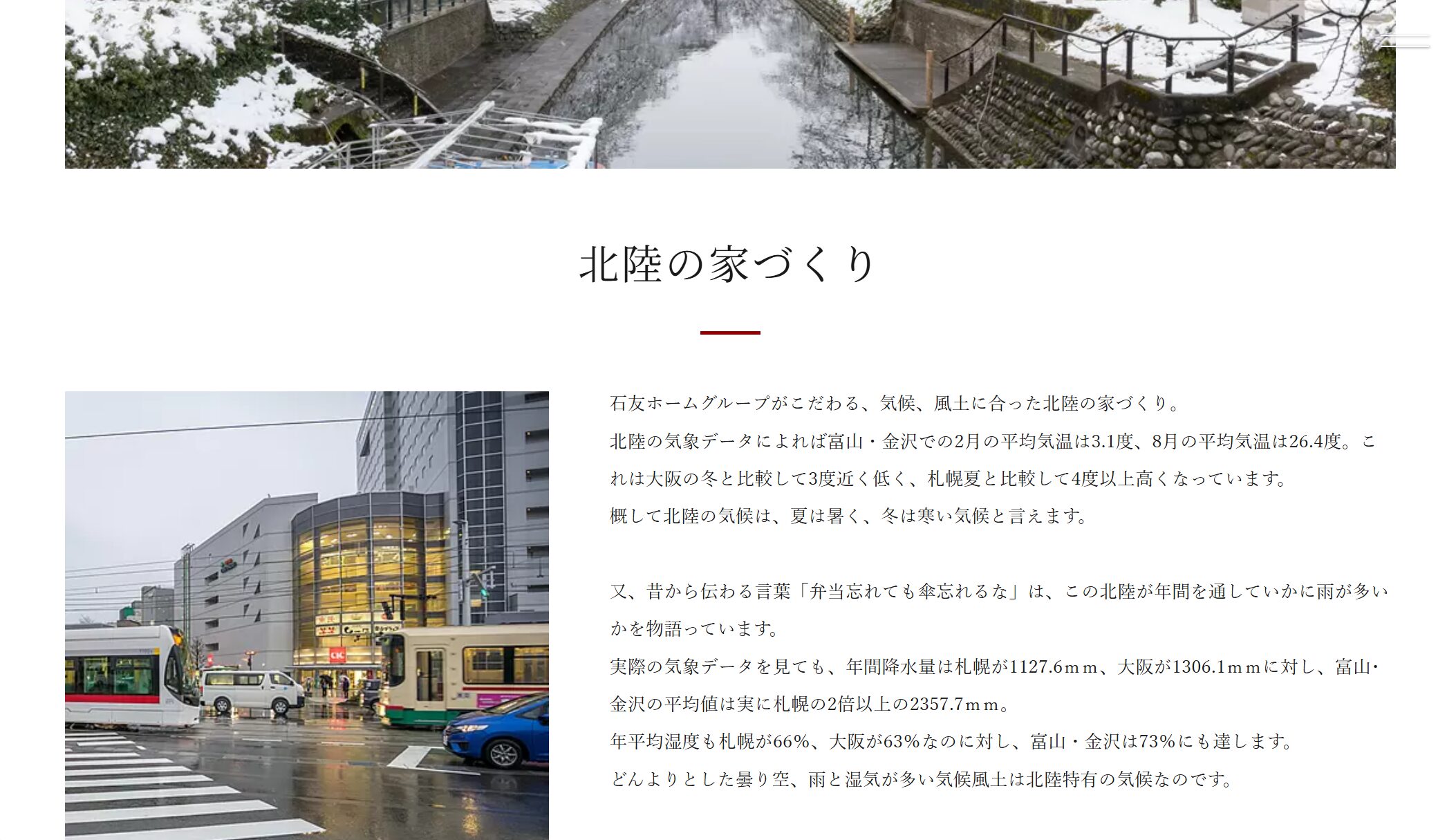 石友ホームは北陸の気候に最適化された住宅づくりに強みがあります。