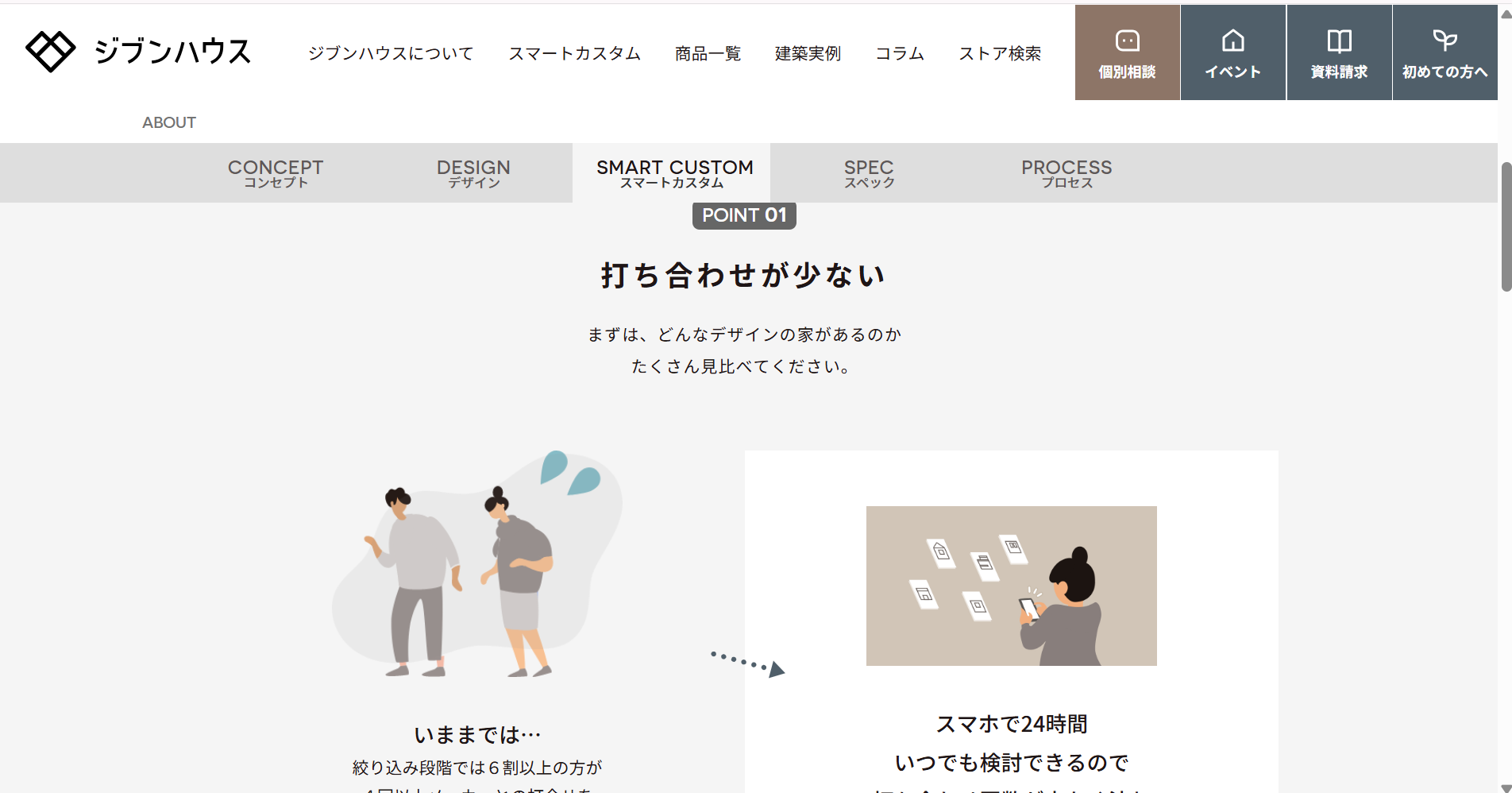 ジブンハウスは「VR住宅展示場」や公式HPでの詳細確認など、オンラインで完結できる仕組みを早くから導入してきました。