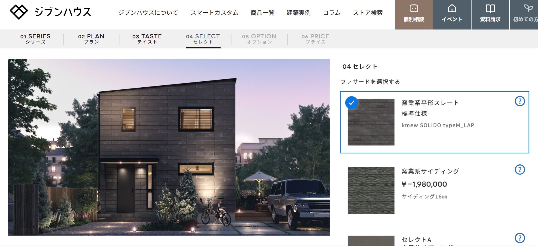 VR体験も画期的だと思いましたが、公式HPで商品ごとの住宅スペックや外壁、構造材の詳細を細かく見れるのに驚き!設備の価格、オプションの種類も前もって確認できるのもスゴク有難いですよね。