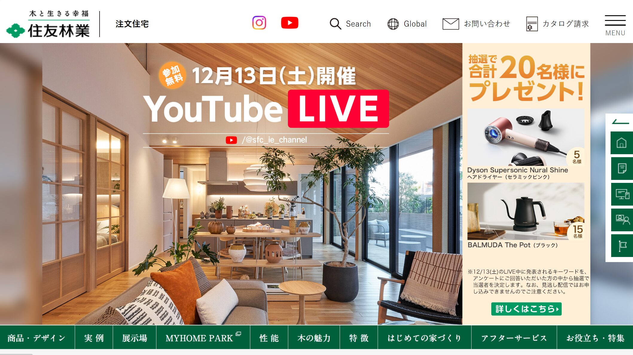 住友林業は、木質感を活かした高級感あるデザインと、自由度の高い設計力に定評があります。