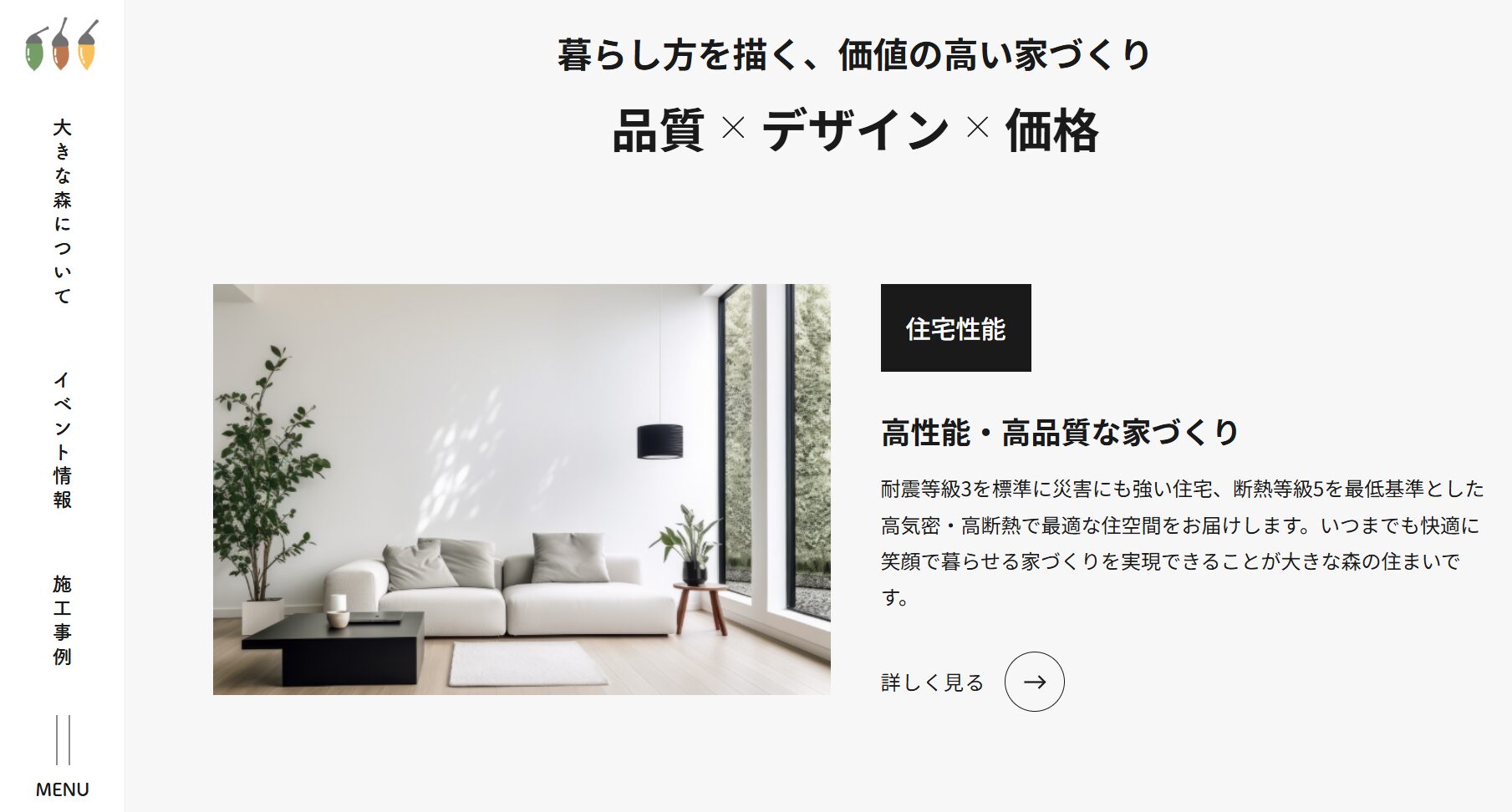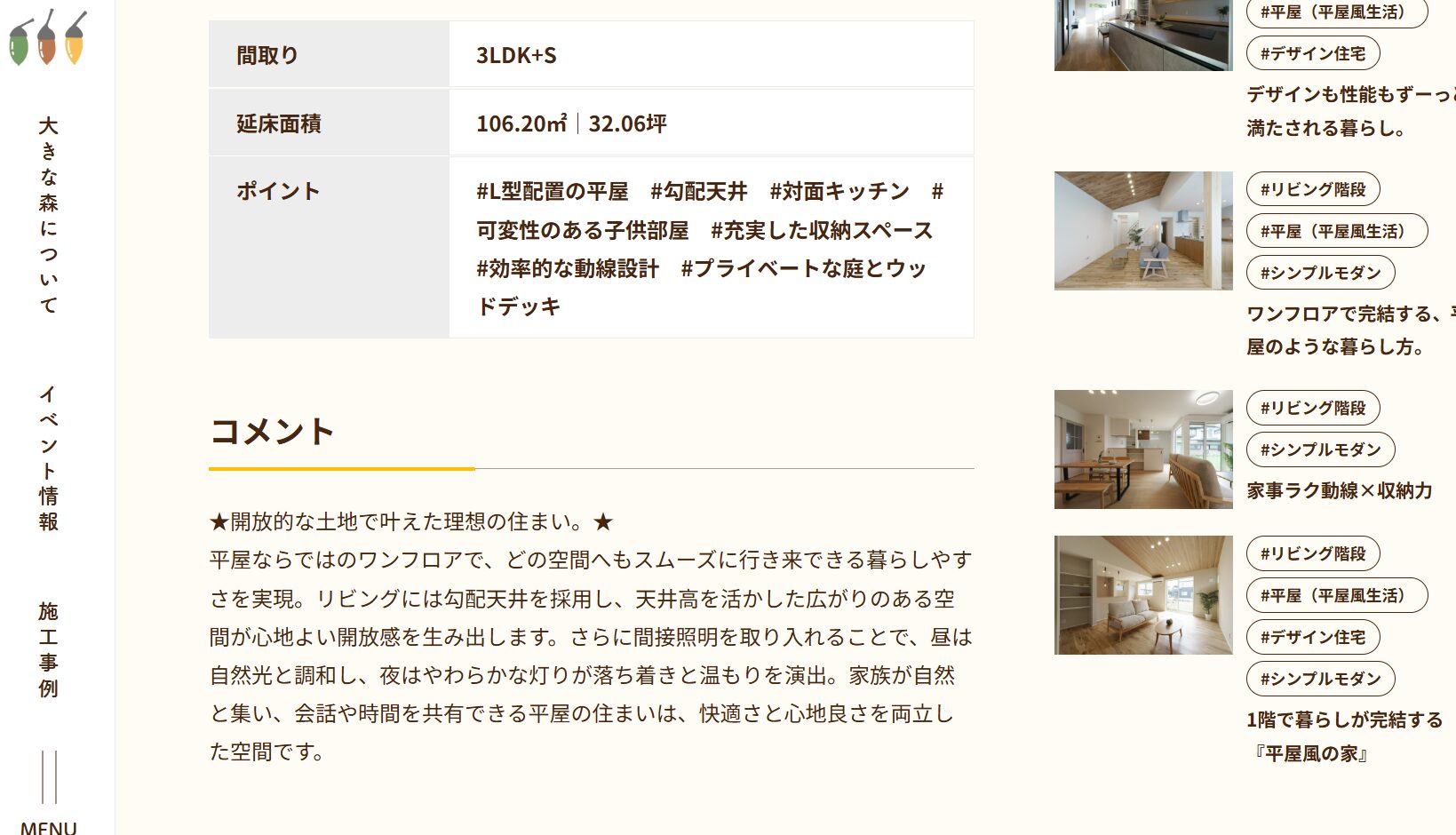 大きなもりは注文住宅らしい自由度の高い設計が特徴で、“楽しさ”や“こだわり”を重視する人に刺さりやすい会社です。