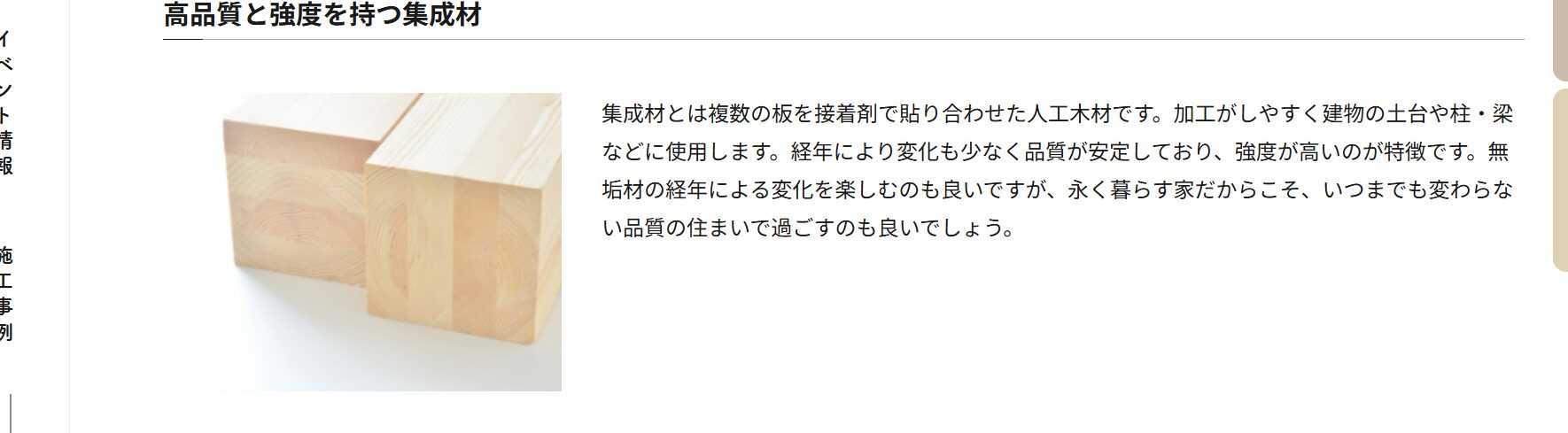 『大きな森』ですか。HPに『構造と耐久性』ってありますよね。『伝統的な軸組工法』なのに『金物工法&プレカット』しかも『構造用集成材』(笑)あまりにもお客をばかにしてませんか?」
