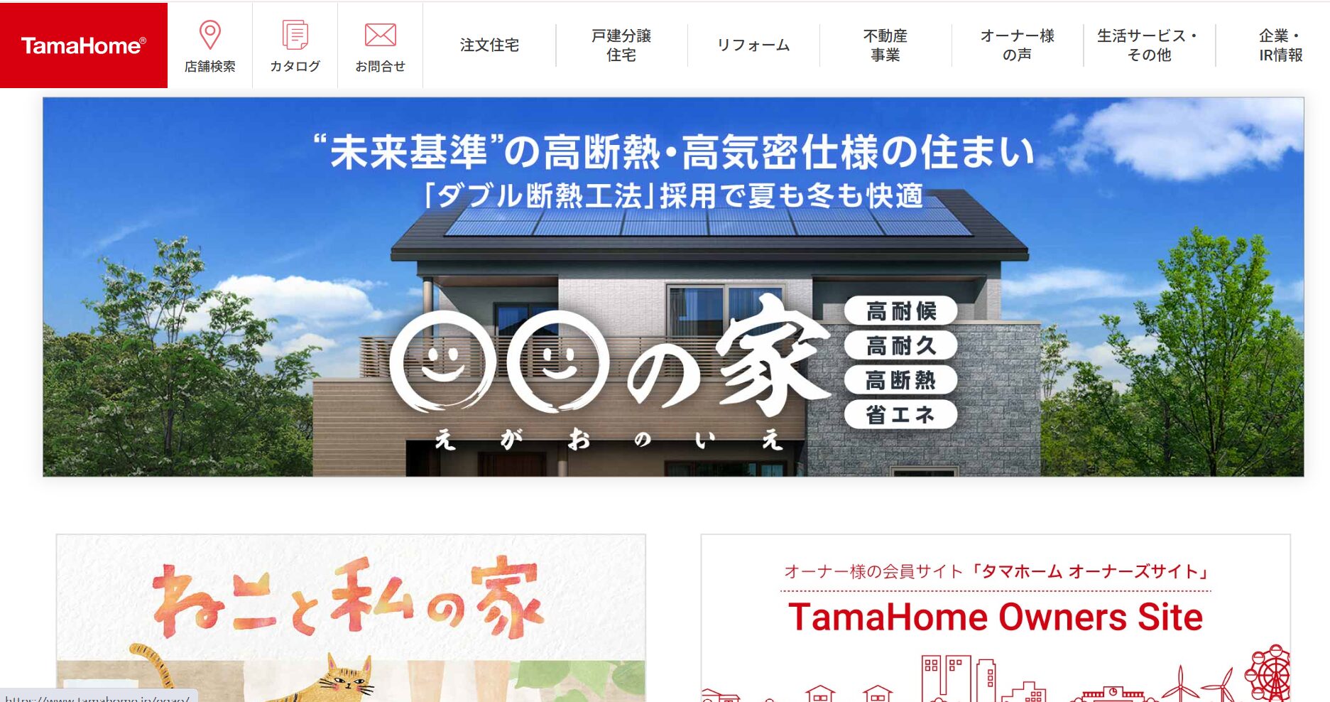 タマホームは全国展開で知名度も高く、コスト重視の間取り・仕様展開が魅力です。