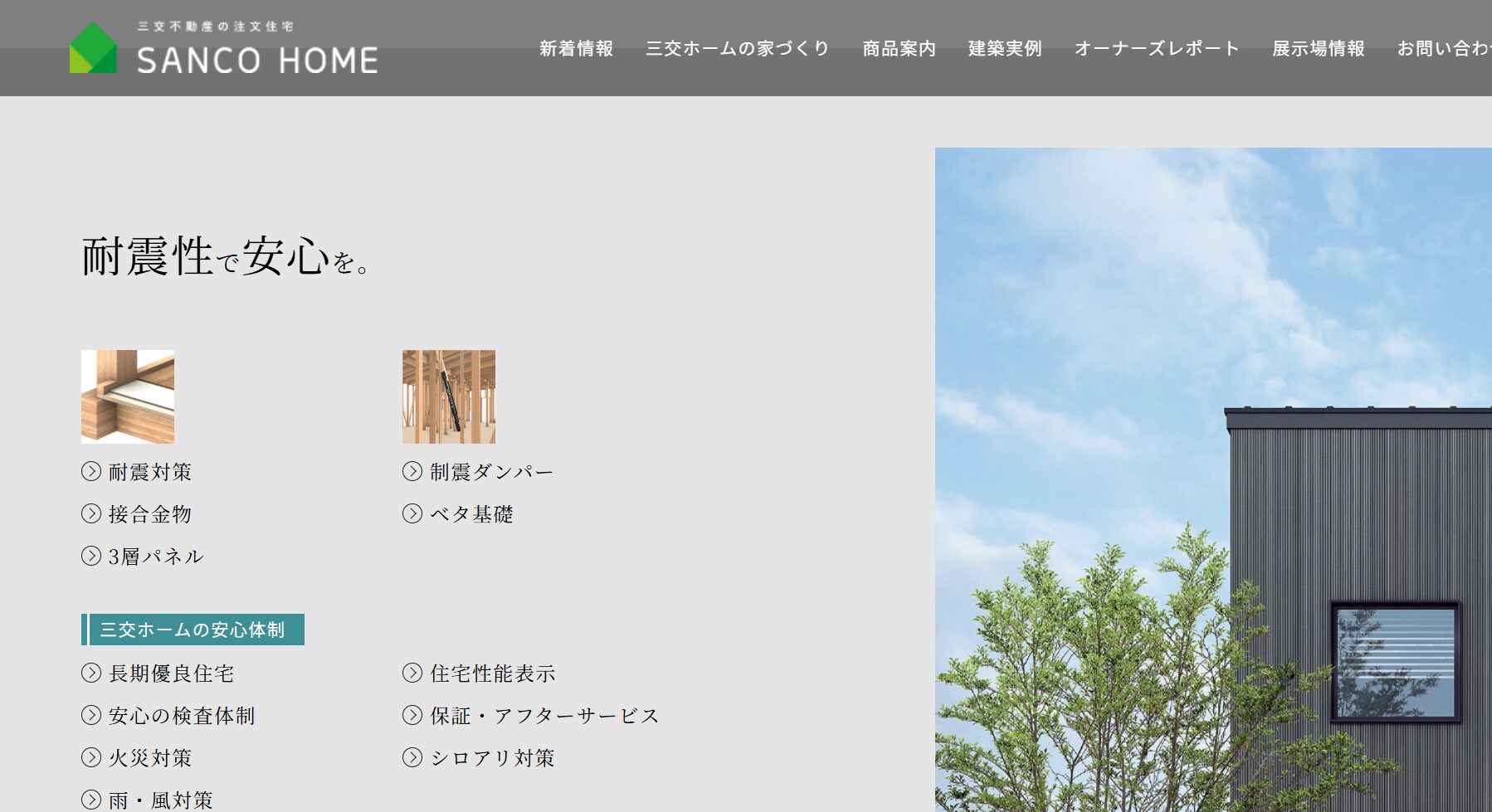 三交ホームは、自由設計・外断熱・制震構造といった性能面での強さが光るハウスメーカーです。