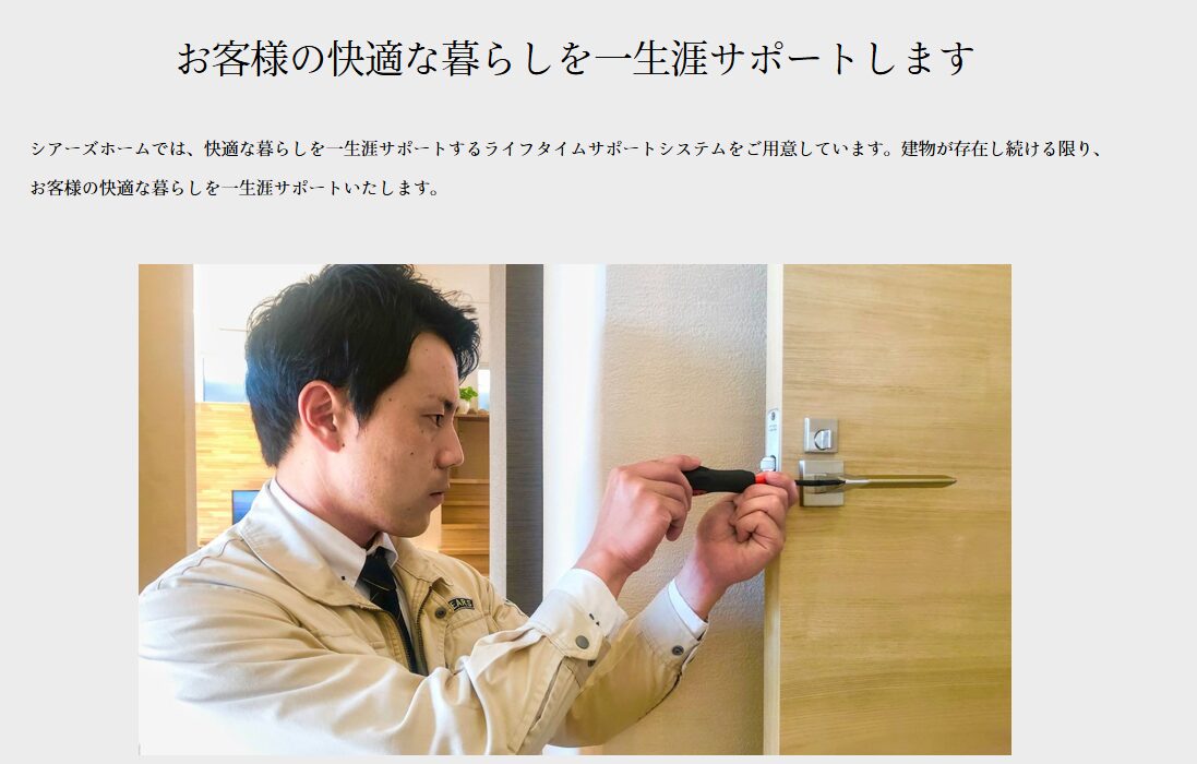 地域密着系で長くやっているところだと、アフターサービスが充実しているのではないかという期待は大きくあるのけど…シアーズホームさんの場合はどういう風になっているのかな。