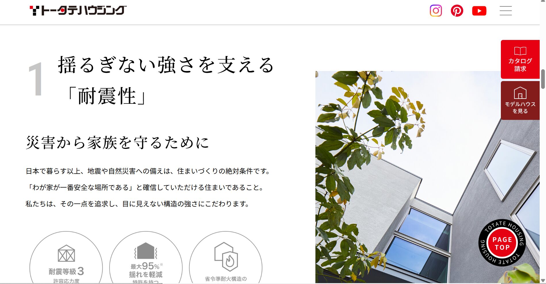 耐震等級3に対応し、断熱性能も高水準ですが、トータテハウジングと比べると地域密着による土地情報の優位性は劣ります。